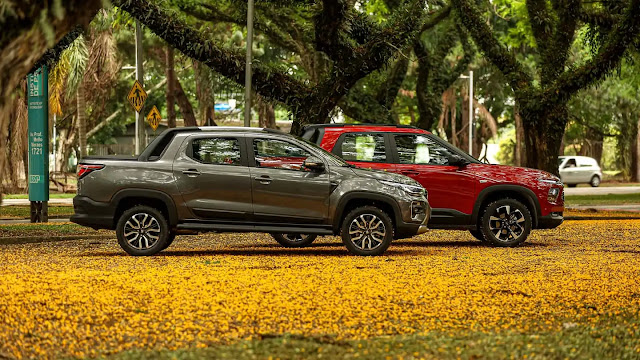 A Strada é menor que a Montana, com 4,48 metros de comprimento, 1,78 metro de largura e 1,57 metro de altura. A Montana tem 4,71 metros de comprimento, 1,79 metro de largura e 1,65 metro de altura.